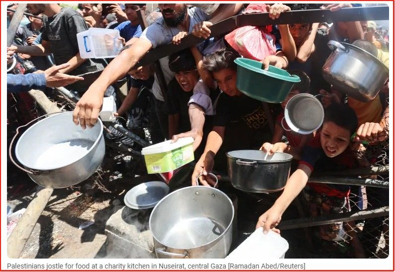 Al Jazeera记者在加沙城市医院见到一名35天大的婴儿死于营养不良,母亲痛哭:“对不起,我没法喂你。”另一名母亲每天只能用水充饥喂孩子,“她买不起面粉,就算买得起也买不到。”