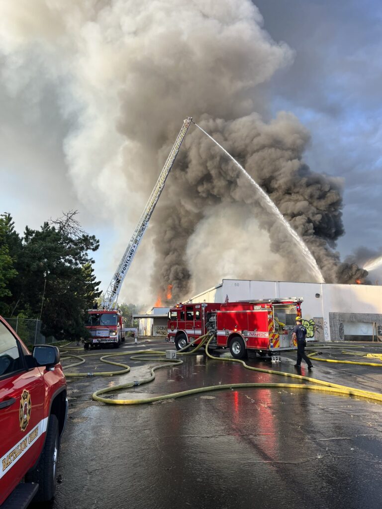 波特兰消防救援局表示,该地区有限的消防栓给工作人员带来了挑战,他们不得不从很远的消防栓抽水。