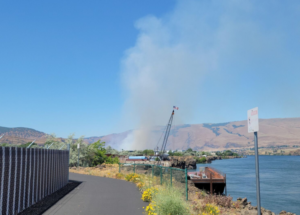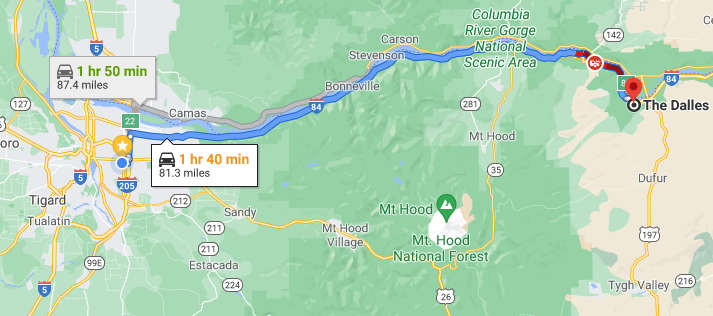 Helicopter dropping water very close to the Google buildings….Air support hitting the wildfire just west of The Dalles currently. I-84 closed, backed up to EB TD exit. 14 closed. West wind averaging 16 g21z #orwx #wawx #gorgewx pic.twitter.com/NwyAmpQcso