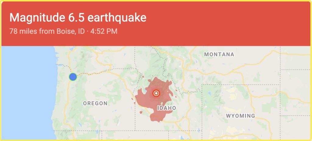 3月31日星期二傍晚5点前,俄勒冈的邻州,爱达菏州(Idaho)首府Boise北部发生了一场6.5级的大地震!大片地区的人们都感到了震动。