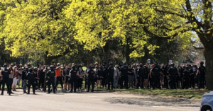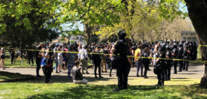 4月16日星期五上午,美国波特兰东南区Holgate 92街发生枪击。一名男子死于警察枪击中。现在,一大批抗议者聚集在现场抗议。