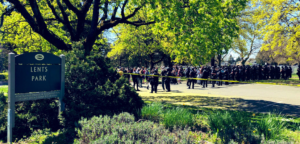 稍早前,大约9点半,波特兰警察局收到报案,一名白人男子在Holgate 92街的Lents公园里手持枪支,行为异常。