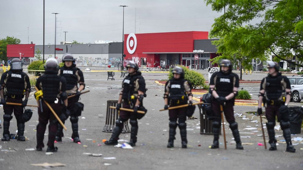 5月29日明尼苏达州巡逻队在目标商店附近部署