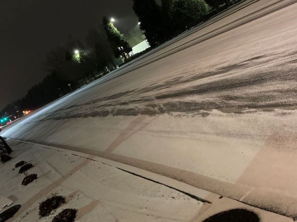 直至早上9点,天空仍然在飘雪。雷达显示,此场大雪是在凌晨4点开始的。积雪导致道路结冰和光滑,车祸四处发生。