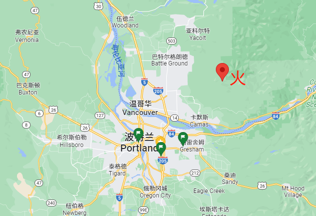 10月10日星期一,美国华盛顿州小温哥华地区的落叶松山(Larch Mountain)附近的纳基亚溪(Nakia Creek)的山火继续燃烧蔓延!燃烧面积一夜之间由70英亩增长至150英亩。