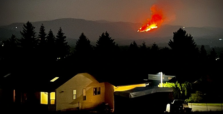 10月10日星期一,美国华盛顿州小温哥华地区的落叶松山(Larch Mountain)附近的纳基亚溪(Nakia Creek)的山火继续燃烧蔓延!燃烧面积一夜之间由70英亩增长至150英亩。