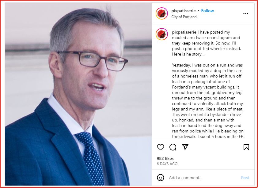谢丽尔·韦克豪瑟 (Cheryl Wakerhauser)随即将展示伤口的照片换成了波特兰市长惠勒先生,并痛斥这座城市没有保护人们的安全。