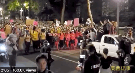 抗议人群一边前进一边大吼大叫:“如果你觉得黑人生命很重要,就拍拍手!”