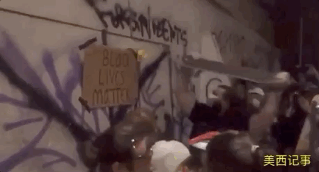 波特兰警察局说,抗议者戴着头盔、防毒面具、防护罩试图闯入联邦法院。抗议者使用撬棍和其他工具刺穿了临时搭建的木质外墙,打碎玻璃窗。