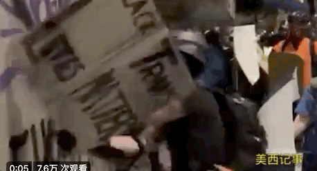 有媒体拍到暴力抗议者包围一名联邦警察并施暴。嫌疑人逃脱。