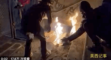 凌晨3点左右,法院大楼外发生大火。抗议者不断添加易燃材料,使大火不断蔓延,并使其在建筑物附近燃烧。