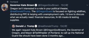 俄勒冈州州长布朗女士认为,俄勒冈州的州警正忙于处理野火、分配防护装备、处理失业部门的电话。她说,她喜爱讨论有关资金援助和口罩供应的问题。