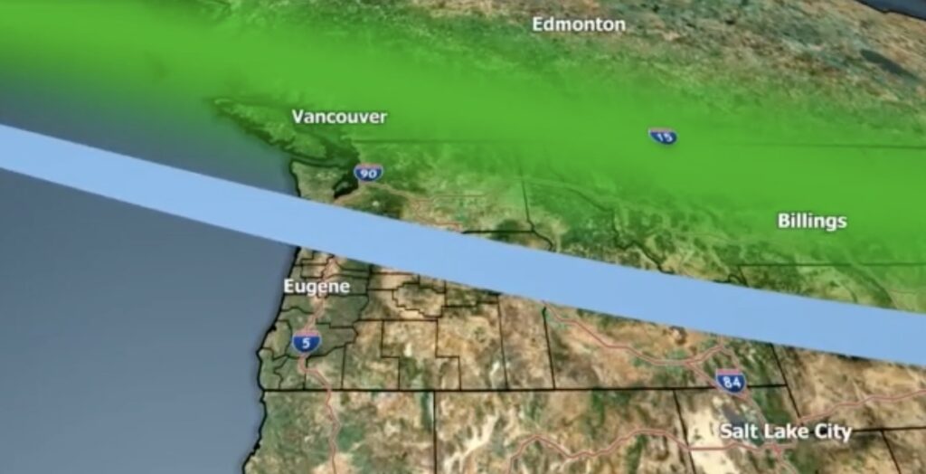 俄勒冈北部的天气预报稍好一些,天空可能在晚上7点至晚上11点之间有明显的空旷,之后云层也开始降落。