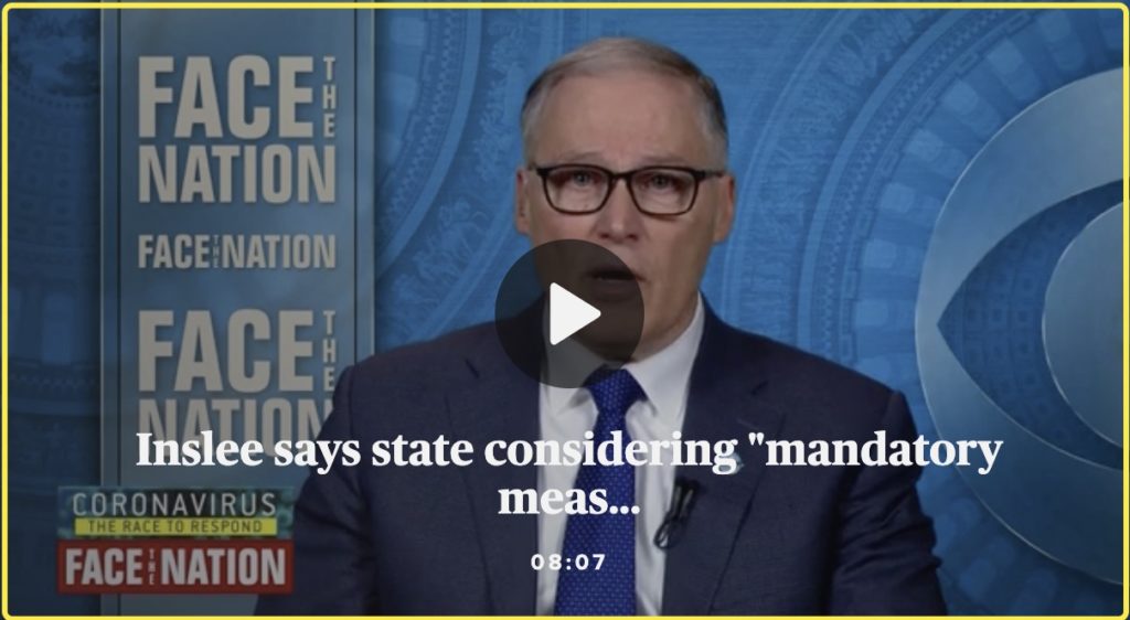 华盛顿州州长周日上午接受媒体采访时称,正在考虑采取强制性措施阻止新冠病毒的扩散,特别是加大保护弱势人群和疗养院。