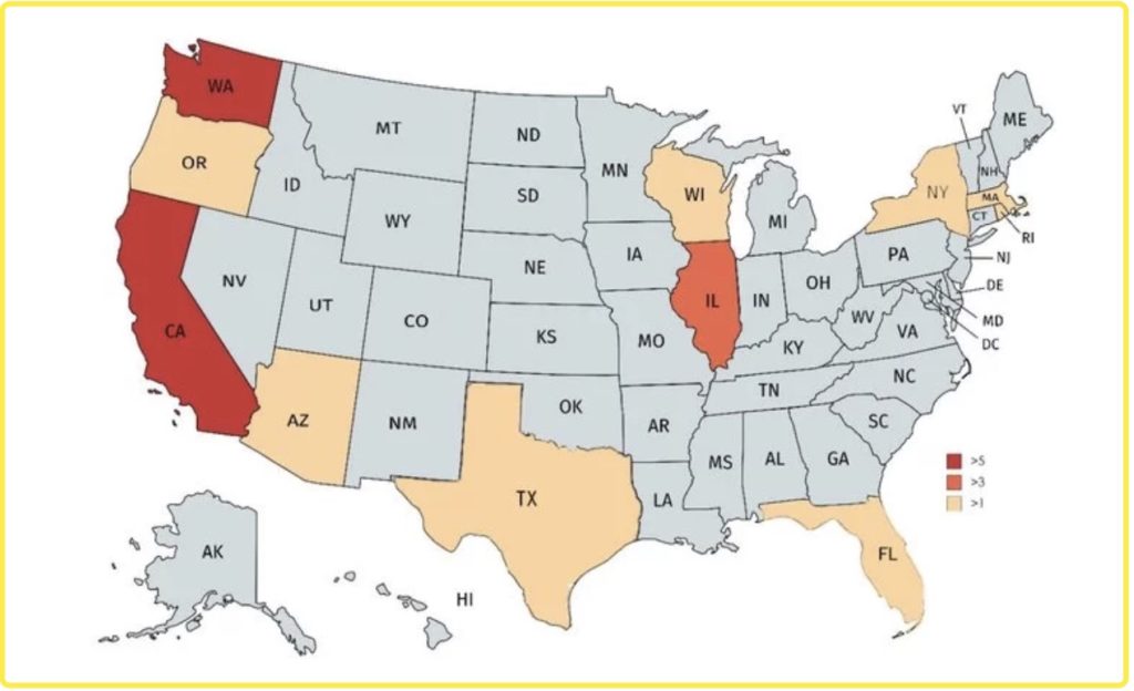 周一,华盛顿州又宣传3名金县患者死亡,1名Snohomish县患者死亡!华州死亡人数上升至6个,即全美国死亡人数均出自华州!