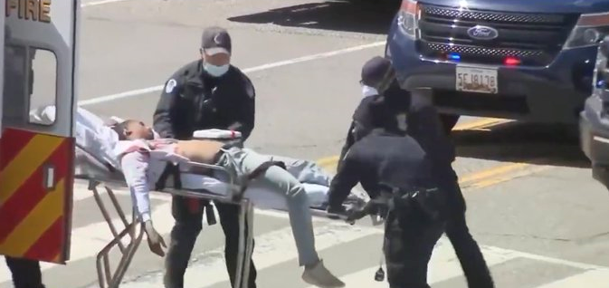 犯罪嫌疑现场被抬担架的照片也被公开。