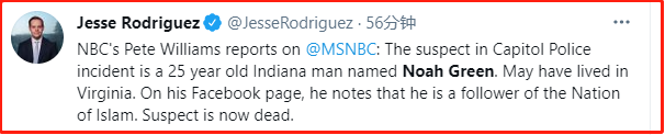 4月2日星期五,一名男子驾车撞向美国国会大厦附近的路障后,一名警察死亡,另一名警察在医院抢救!