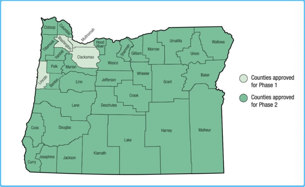 6月21日星期日,俄勒冈卫生局报告,俄勒冈新增190例新冠病例,新增1例死亡。