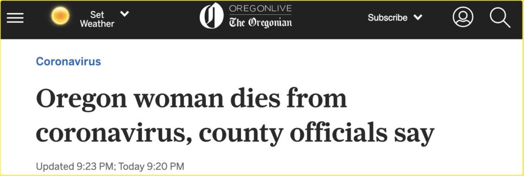 此案例标志着俄勒冈新冠死亡人数是2个!