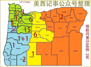 由于死亡妇女不在俄勒冈先前公布的新冠病例数中,所以她死亡后的阳性结果使俄勒冈的新冠病例累计达到68例。