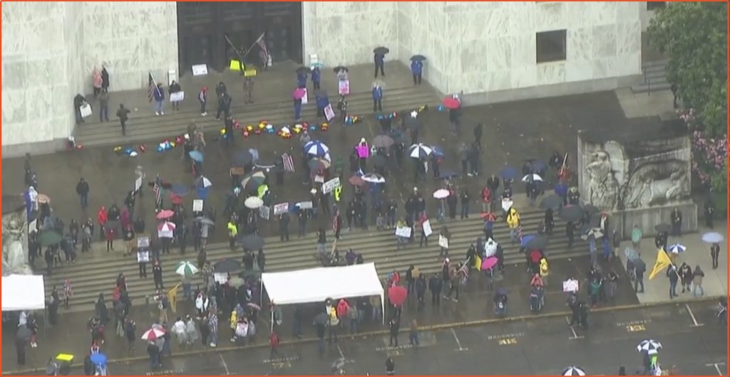 5月2日星期六,现在!大批示威者聚集在俄勒冈州首府西林市议会大厦。他们呼吁立即重新开放俄勒冈州!