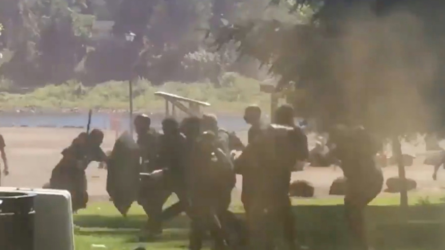 暴动发生在Clackamette公园。骄傲男孩(共和党支持者)和Antifa极端组织(民主党支持者)紧张对峙。