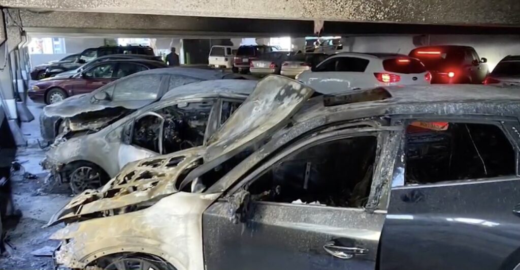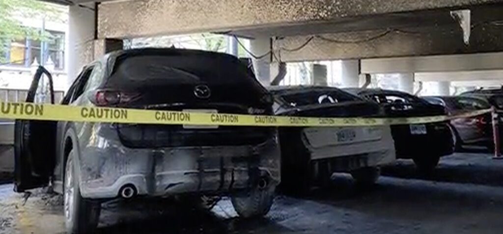 昨天(星期二)晚上,波特兰市中心三个停车场被放火,大量汽车被烧毁。