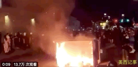 一辆皮卡车撞向抗议者设立的路障。抗议者将摩托车放在皮卡车前面,但皮卡车直接撞上铁链围栏,撞上摩托车,一路绝尘,火光四射!这一幕被来自美国各地的媒体都拍下来,在新闻报道上反复播放。
