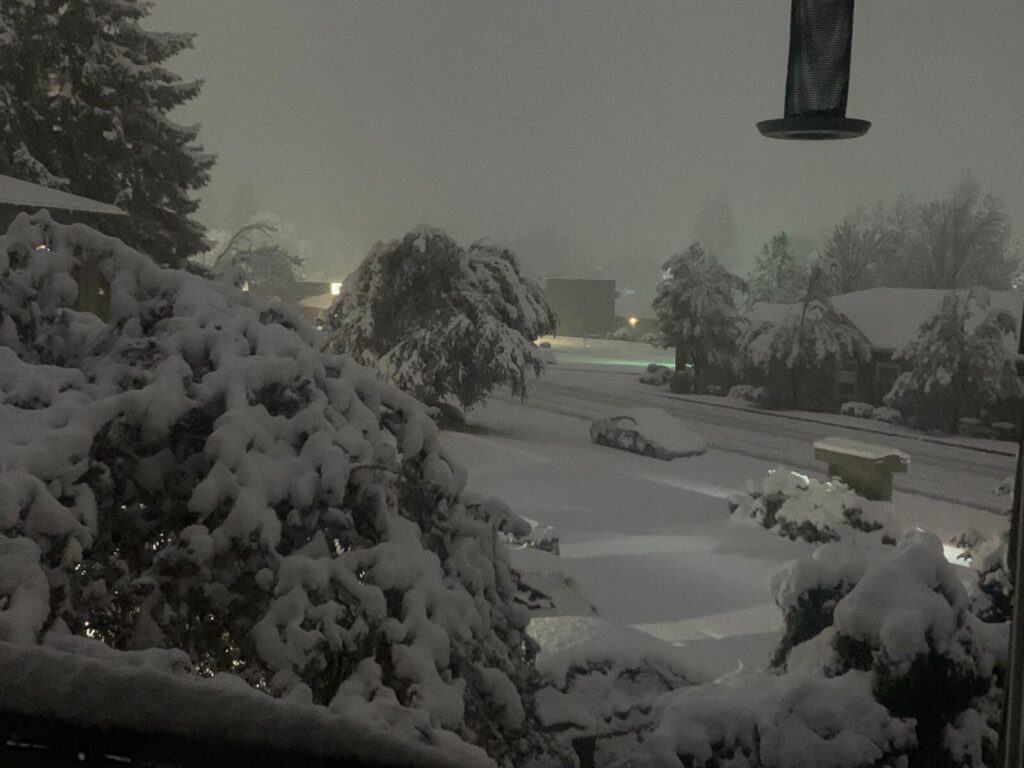 4月11日星期一,大波特兰地区下起百年罕见的大雪,大范围积雪5厘米以上。