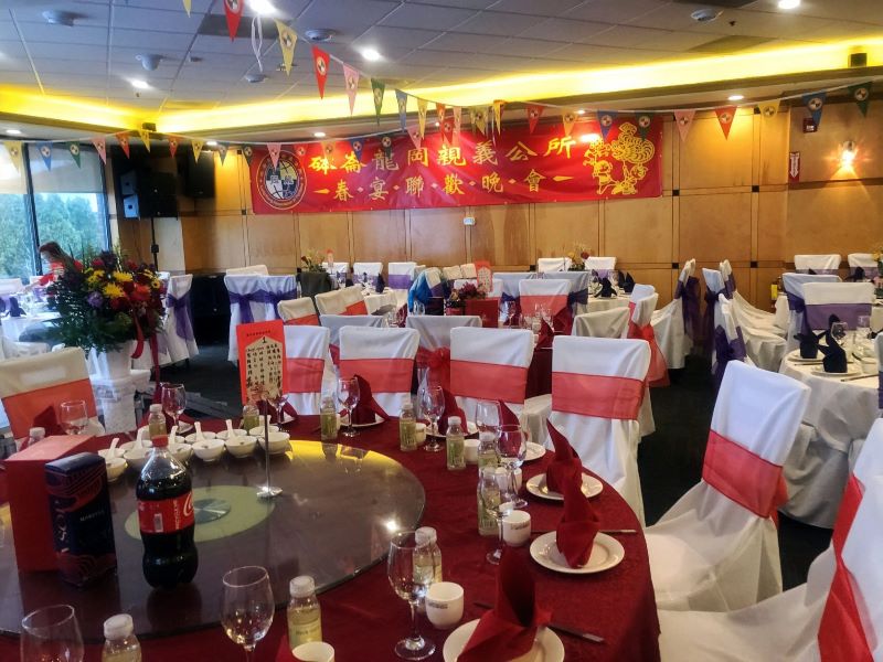 2月26日晚六点,天公造美当晚没下雪。砵仑龙冈亲义公所广邀300多位宾客欢聚一堂,于东南区的鱼乐轩海鲜酒楼举办兔年春节大联欢,场面布置非常壮观。