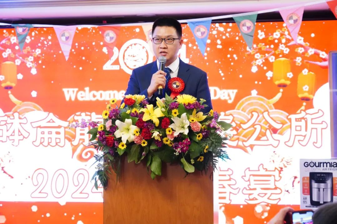 砵仑龙冈亲义公所元老赵锡业向来宾们介绍了龙冈亲义公所的发展历史。监察长张向阳发表答谢辞,祝愿大家龙年年事事顺利,并代表龙冈亲义公所感谢一路大力的各界人士和侨团,希望大家继续支持龙冈亲义公所。