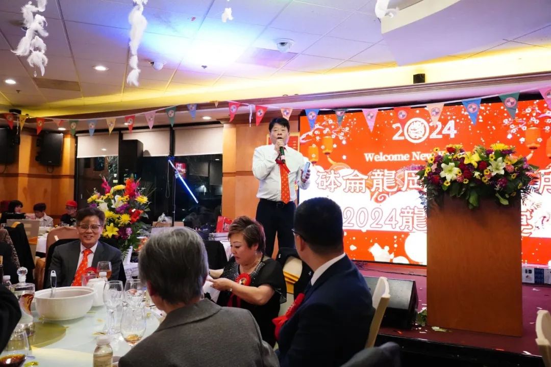 总之,砵仑龙冈亲义公所举办的春宴堪称一场精彩绝伦的文化盛事。来自各界的领导和兄弟姐妹们齐聚一堂,共享龙年的喜庆氛围。此次春宴不仅有精彩的演出节目,更有华丽的舞龙舞狮表演和传统音乐的奏响。实力唱将和舞蹈艺术家们的精湛表演让现场嘉宾沉浸在音乐和舞蹈的海洋中,为节日增添了别样喜悦。整个晚宴以其丰富多彩的节目和温馨热烈的氛围,为在座的每一位嘉宾带来了难忘的回忆!