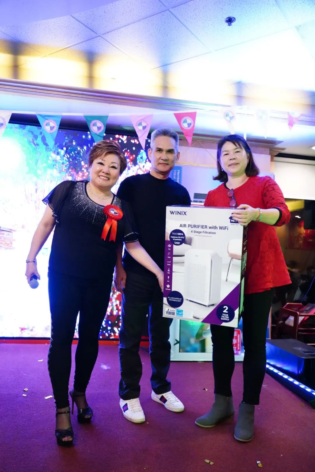 - 陈孟明伉俪将中奖的58寸大电视重新捐给现场再抽奖。