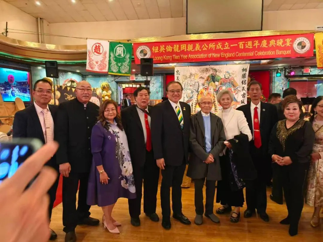 2025年11月8日,美國紐英倫龍岡親義公所在波士頓隆重慶祝成立100週年。來自全美多地及臺灣的龍岡宗親齊聚一堂,共同見證這一歷史時刻。砵崙龍岡親義公所由張向陽元老、趙疊主席、趙苑茵監察長帶領代表團專程出席,為百年慶典增添光彩。