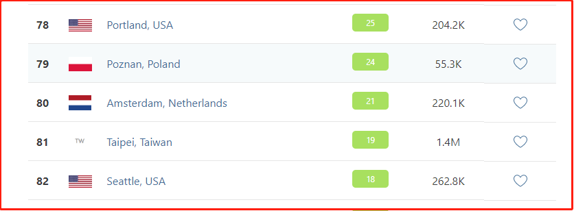 在全世界染污排名上,IQair 显示:波特兰和西雅图由污染第一第二名跌至第78和第82名。