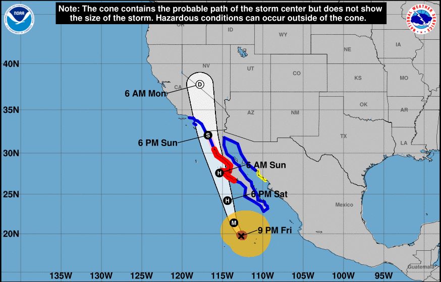 星期日由飓风减弱为热带风暴,进入美国南加州。它将成为加州84年来第一场热带风暴。
