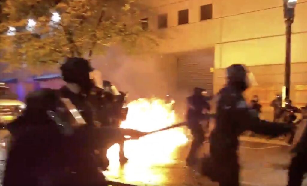 警察宣布发生暴动后,逮捕了13人。一名警察在驱散人群时被掷过来的燃烧弹击中脚部。大量警察在市中心各街区也遭遇到燃烧弹的袭击。波特兰市中心昨晚险象环生。