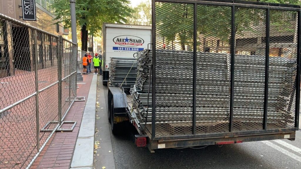 民主党在俄勒冈州选情告急,拜登总统到访的主要目的是提振行情。白宫还没公布他到访的具体地点,但KGW报道说,在波特兰市中心先锋法院广场(Pioneer Courthouse Square)附近的街区,工作人员正在热火朝天的架起围栏。