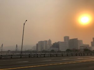 9月12日星期六,西雅图,波特兰,和旧金山各地小伙伴回报,当地的天空被“烟雾”覆盖,橙黄橙黄的一大片,遮住了天上的太阳,遮住了眼前的路,遮住了你和我,能见度很低!就算是戴着N95口罩坐在车内,也能闻到烧焦味!