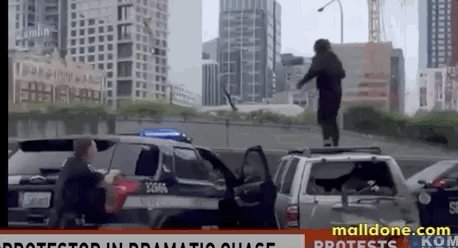 这是西雅图7月2日的新闻。一名男子与警察在5号高速公路上追逐,险象环生。据说,这名男子是”占领区“的反抗者。