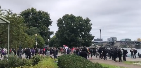 下1时,几百名左翼Antifa(民主党支持者)聚集在波特兰市中心的海滨公园(Tom McCall Waterfront Park),媒体记者在那里看到有人手持火力武器,还有人在骚扰两个举着宗教旗帜的人。左翼Antifa认为他们拥有波特兰,叫右翼人士不要来。