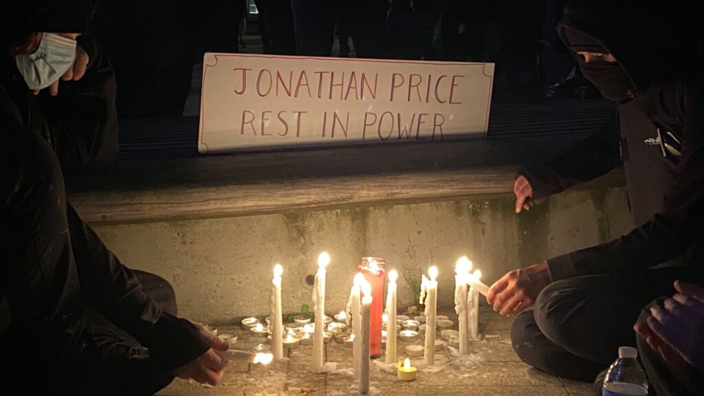 今晚,抗议者以德州黑人Jonathan Price的名义;这个黑人在试图破坏加油站时死于警察枪下。