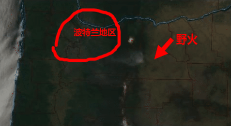 从以下卫星照片可以看出,由于风向作用,烟雾正直冲大波特兰地区的克拉克马斯县(Happy Valley)和摩特诺玛县(波特兰)。