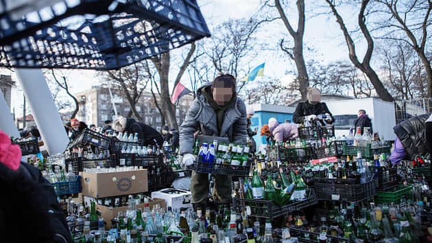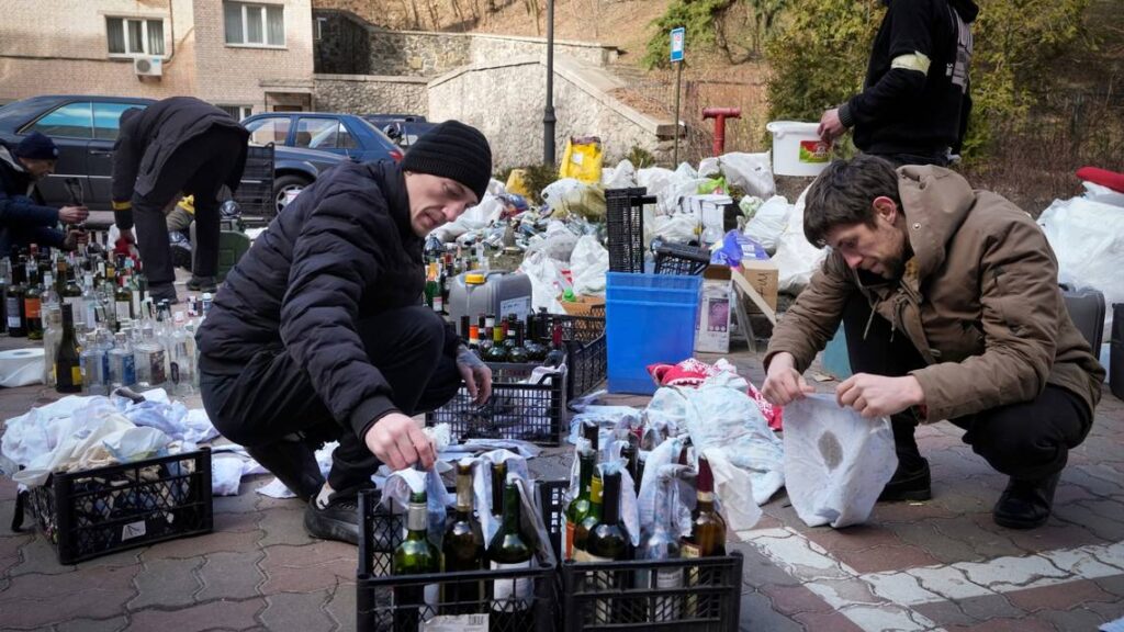 乌克兰民防成员在乌克兰基辅准备燃烧弹