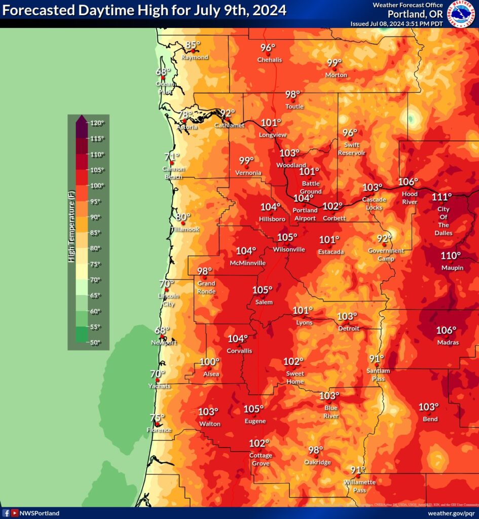气象局预计,7月9日星期二,大波特兰地区更热,气温可能达到104华氏度(40摄氏度)!
