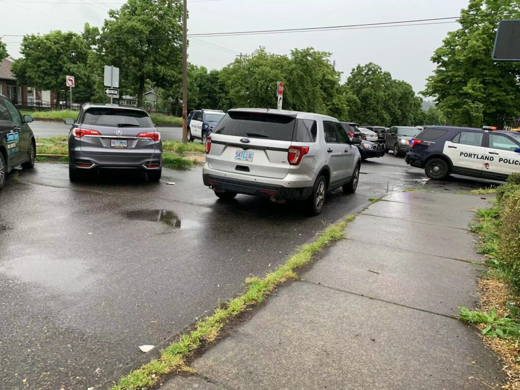 7点半时,犯罪团伙被警察追至东南77大道夹Powell街(凤城餐馆前面)。
