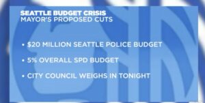 6月23日星期二,西雅图市长,Jenny Durkan,将提议在2020年剩余的时间内削减警察预算2000万美元,借口是弥补新冠大流行引起的资金短缺。