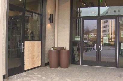 波特兰警察局证实,这个星期早些时候,Shake Shack(昔客堡)的一扇窗户被爆玻璃,已钉上了夹板。