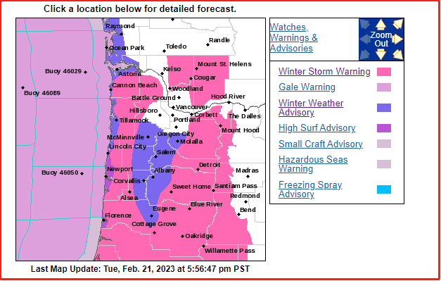 截至2月21日星期二下午6点,波特兰的周边地区已经进入冬季模式!