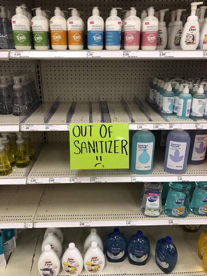 下午2点半,当地小伙伴回报,Tigard的Costco的洗手液,漂白剂和消毒巾卖断货!Motrin发烧药也没了!提醒大家别白走一趟!